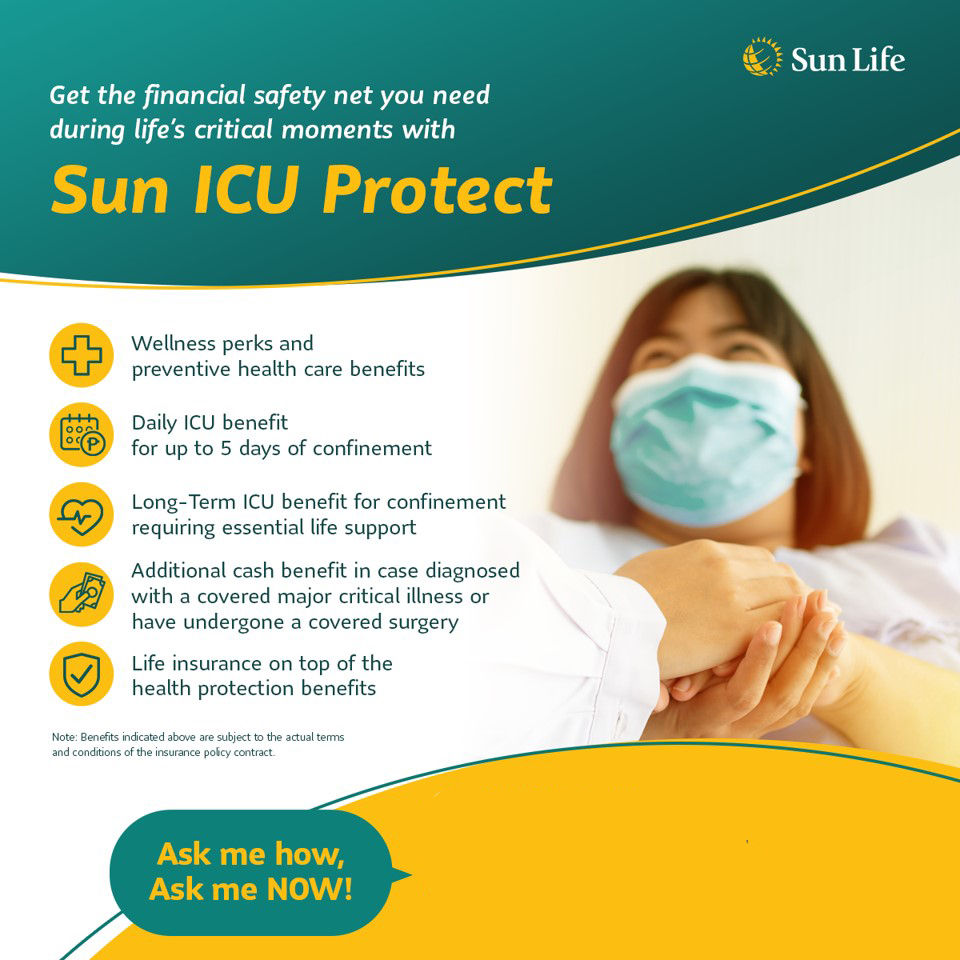 This is an affordable health protection plan that provides cash benefits so you can worry less about costly medical bills. In addition, Sun First Aid also provides benefits for unforeseen events such as untimely passing, accidents, and disability.
